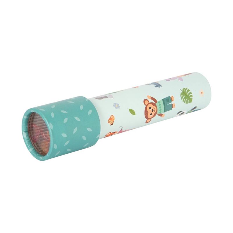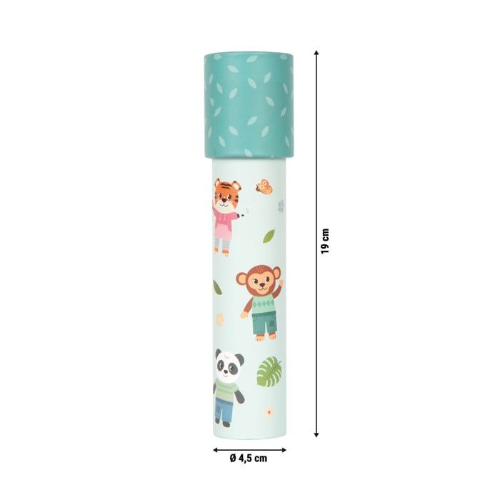 Класическо забавление с калейдоскоп в детски дизайн от серията ‘Приятели от джунглата’. С всяко леко завъртане цветните шарки се променят и стимулират въображението.