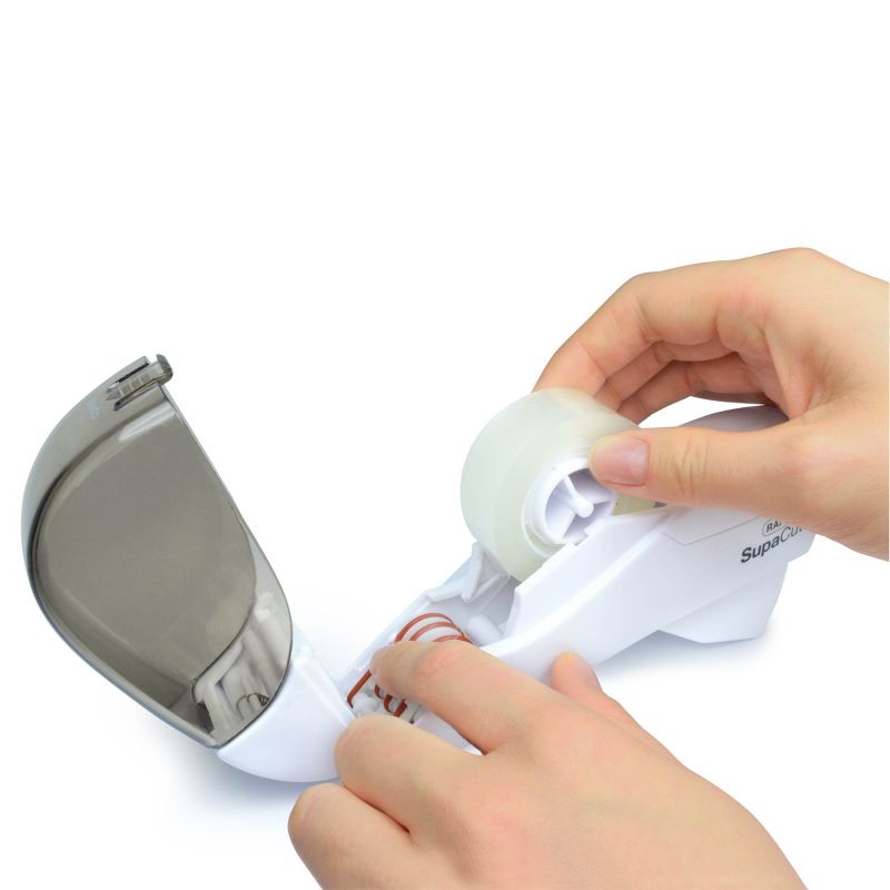 Rapesco Supacut е практичен диспенсър за тиксо (тиксорезачка), за удобна и бърза работа с една ръка. Автоматично рязане с едно движение. Просто натиснете спусъка, за да изкарате лентата и държейки го изтеглете за необходимата ви дължина. Пускайки спусъка диспенсъра отрязва тиксото. Режещото острие е затворено, което осигурява надеждна и безопасна работа.