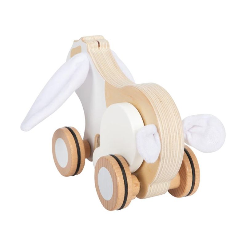 Играчката е проектирана така, че да подпомага развитието на двигателните умения, като насърчава децата да се движат повече. Тя принадлежи към категорията дървени играчки за бутане, които спомагат за развитието на координацията и баланса. Особено интересен елемент са меките, шумолящи уши, които добавят допълнителен сензорен стимул, стимулирайки любопитството на малчуганите.