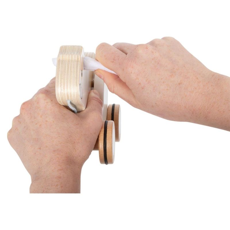 Тази дървена играчка за бутане е идеален избор за първите години на детето, когато то започва да открива околния свят чрез движение и взаимодействие. Играчката следва принципите на образователните играчки Монтесори, като насърчава самостоятелността и активната игра.