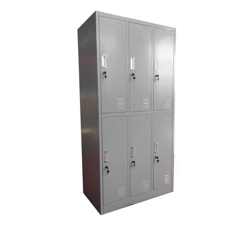 Гардероб RFG, метален, троен, с шест отделения, 185 x 90 x 45 cm, сив, врати със сив цвят