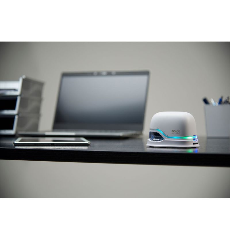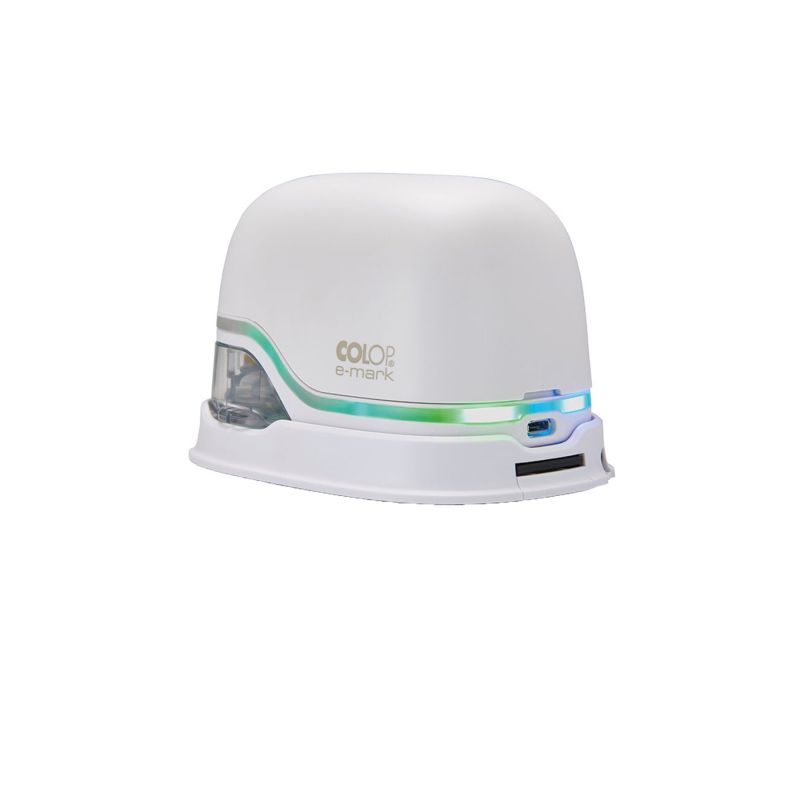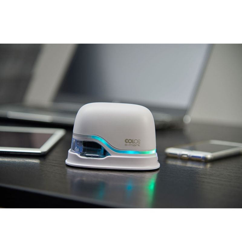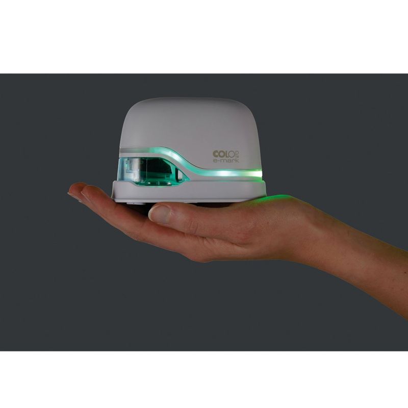 COLOP E-MARK е електронно мобилно маркиращо устройство за създаване и промяна на вашите отпечатъци, чрез използване на приложение от мобилно устройство или компютър. Отпечатва само с едно леко движение.