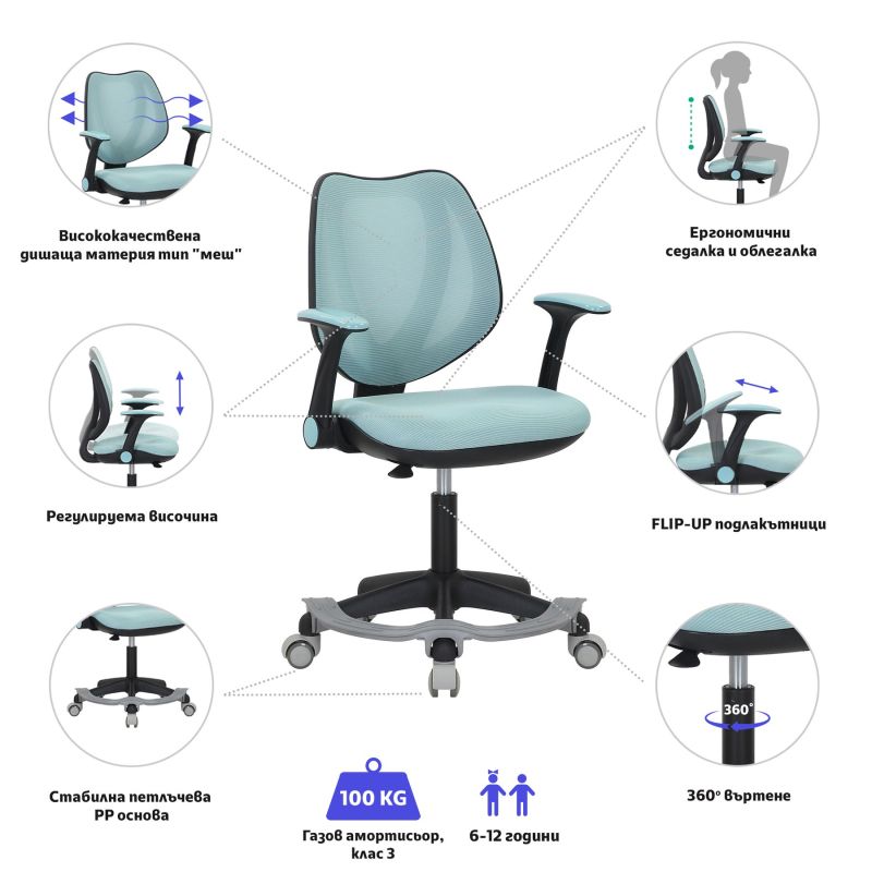 Детски стол RFG Sweety Black, меш, до 100 kg, син