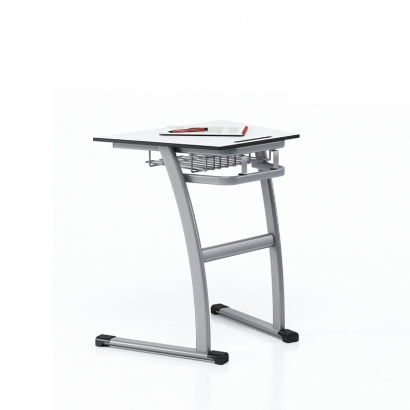 Ученически чин RFG Fila, единичен, тип трапец, над VIII клас, 700 х 500 х 750 mm, бял HPL плот, сив метал, 2 броя в комплект