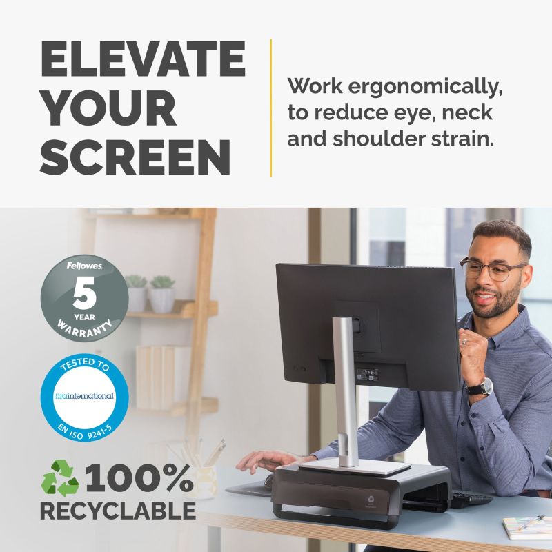 Поставка за монитор в компактен преносим дизайн, с която ще подобрите удобството при работа.