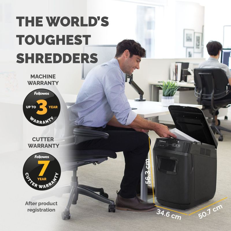 Шредер за унищожаване на документи Fellowes Automax 200C, Cross-Cut, P-4, обем на коша 32 L, за 1-3 потребителя, ниво на шум 60 dB