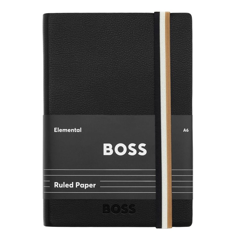Hugo Boss Тефтер Iconic, А6, широки редове, черен