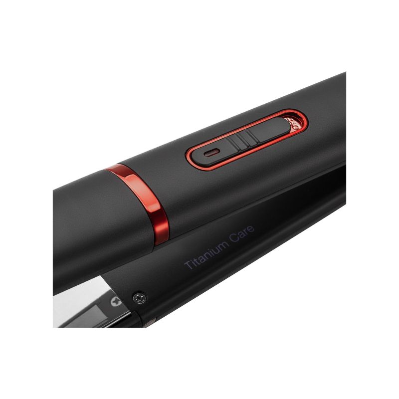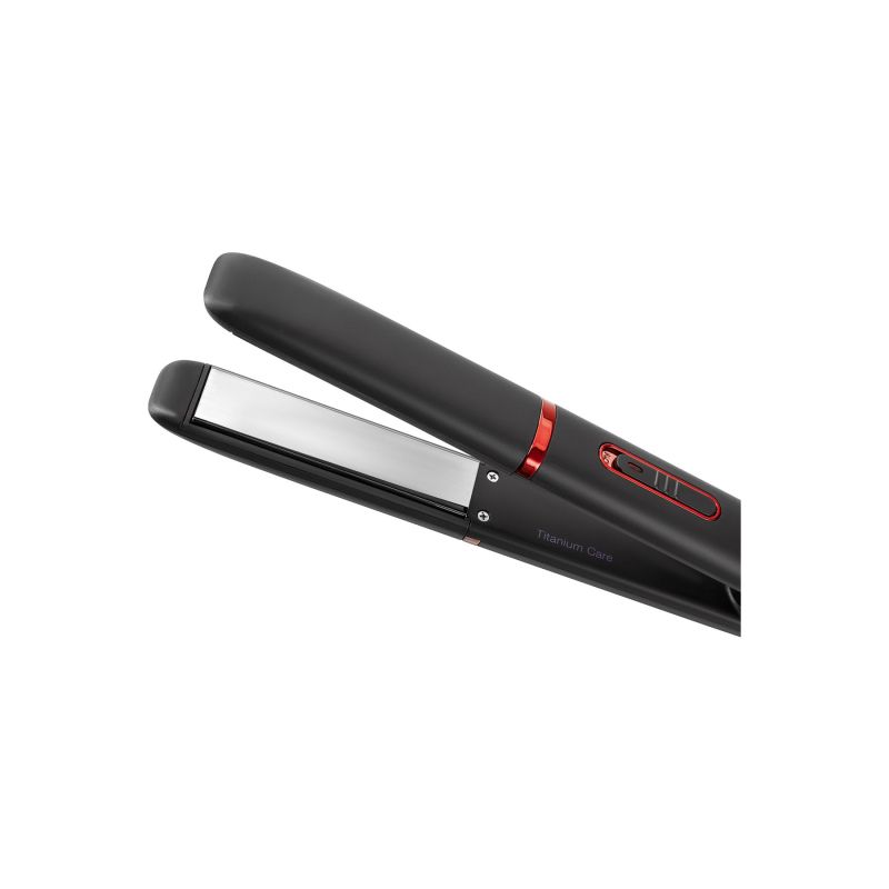 Преса за изправяне на коса с титаниева повърхност на плочите.