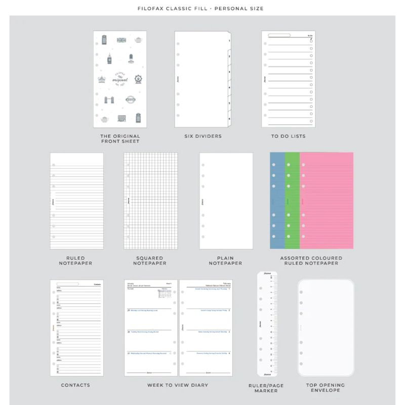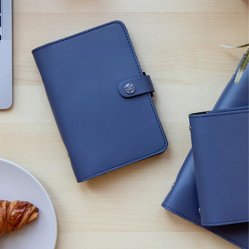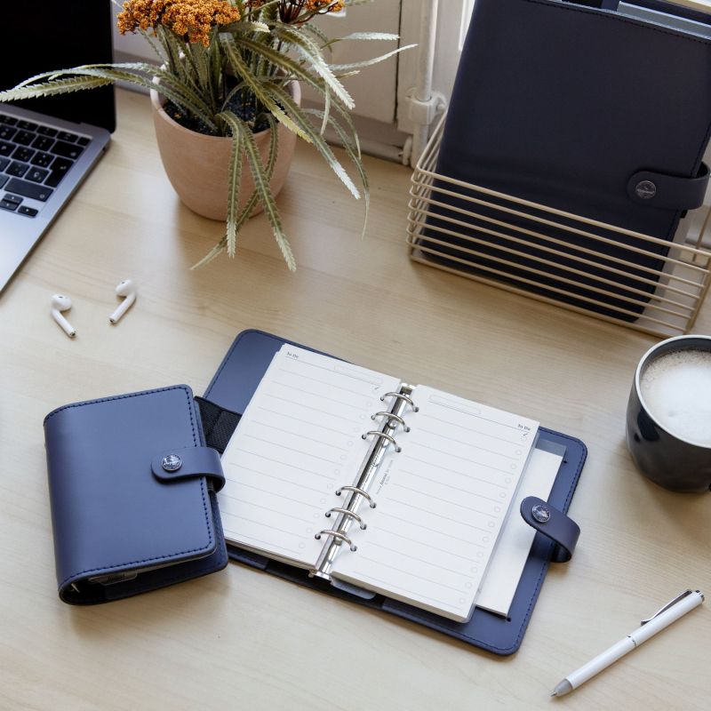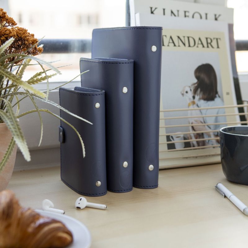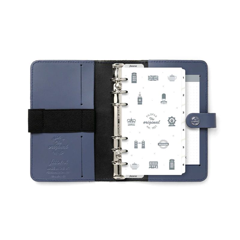Вътрешната страна на лявата корица разполага с два джоба за карти, един вертикален джоб, два еластични държача за химикалка и един многофункционален еластичен държач.