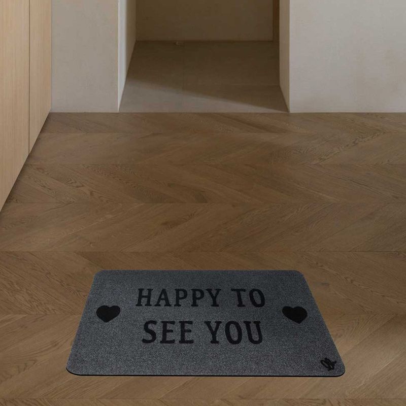 Изтривалка Olivo Zeus - Happy to see you, 100% полиестер, 40 х 70 cm, сива