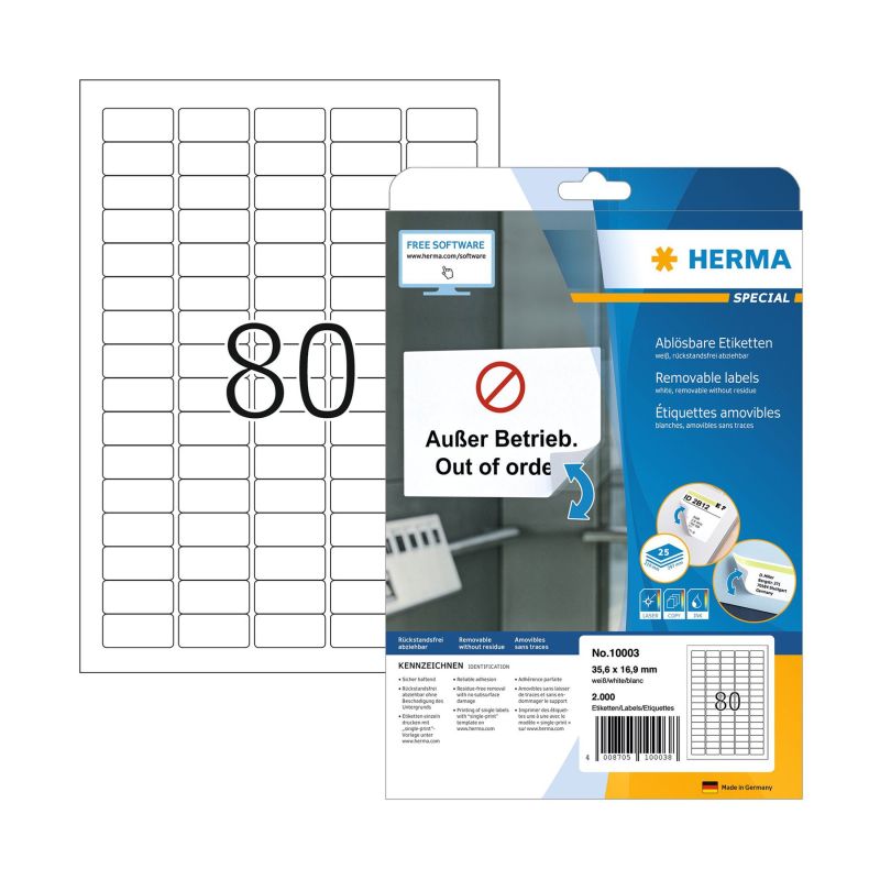 Herma Самозалепващи се етикети, A4, презалепващи, 35.6 х 16.9 mm, 80 броя, 25 листа