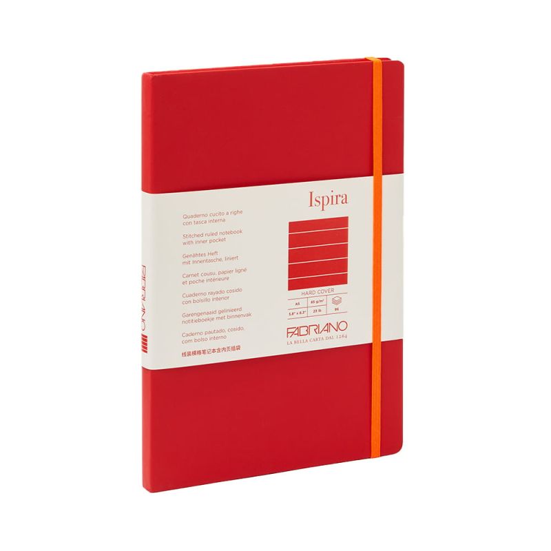 Fabriano Тетрадка Ispira, A5, широки редове, шита, твърда корица, 96 листа, червена