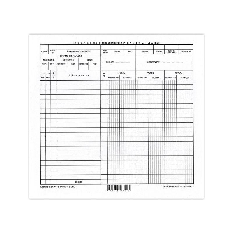 Складов картон 1954 за аналитично отчитане на материали, 100 броя