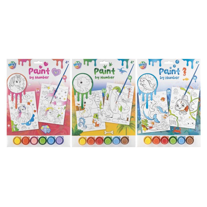 Moxy Рисуване по номера, 2xA4, с четка и 6 бои, асорти, 48 броя