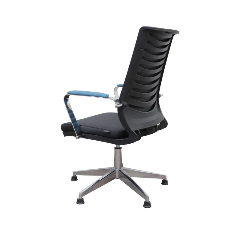 Посетителски стол RFG Troi 82 W, екокожа, до 120 kg, черна седалка, синя облегалка, сглобена мостра