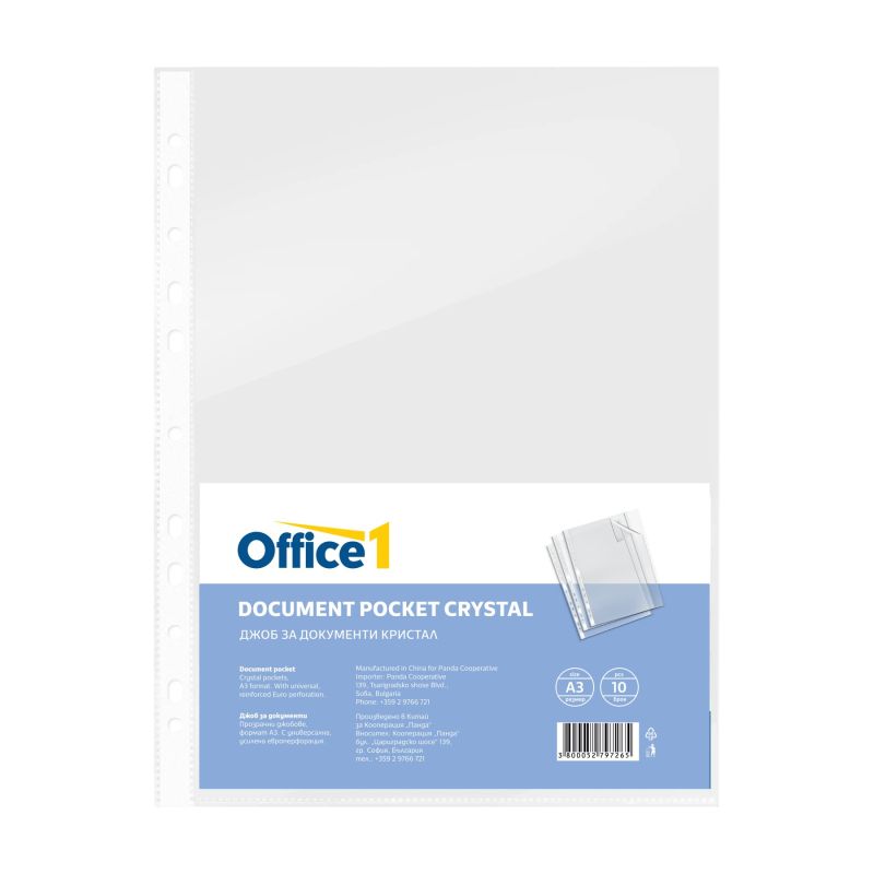 Office 1 Джоб за документи, A3, кристал, 10 броя