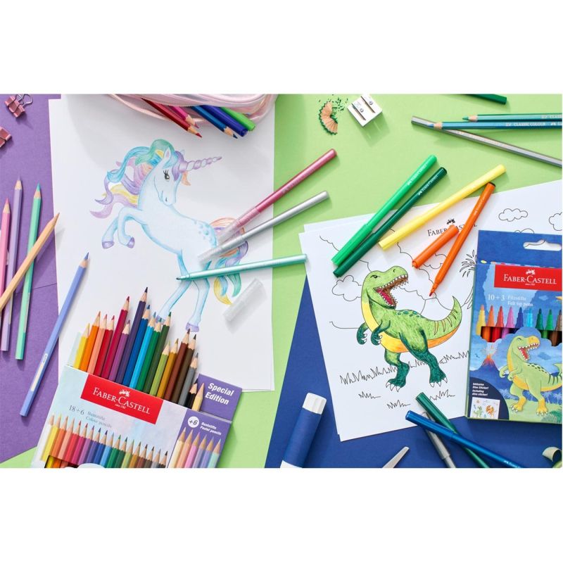 Faber-Castell Моливи Динозавър, 10 стандартни и 3 металикови цвята