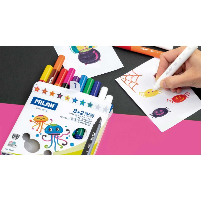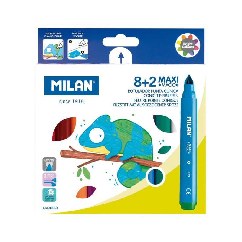 Milan Флумастери Maxi Magic, 8 цвята и 2 магични