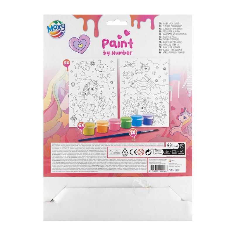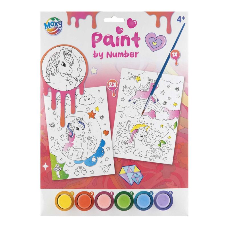 Moxy Рисуване по номера Еднорог, 2xA4, с четка и 6 бои