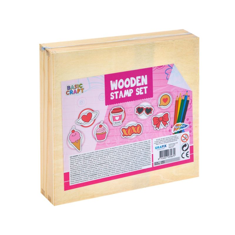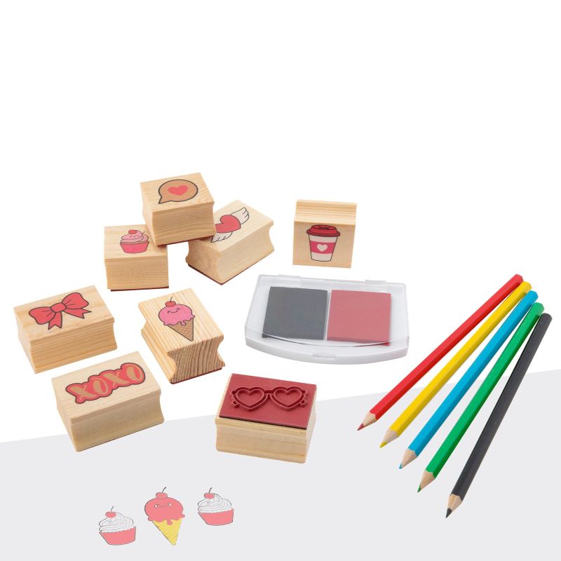 Moxy Комплект дървени печати и цветни моливи, в кутия, розови