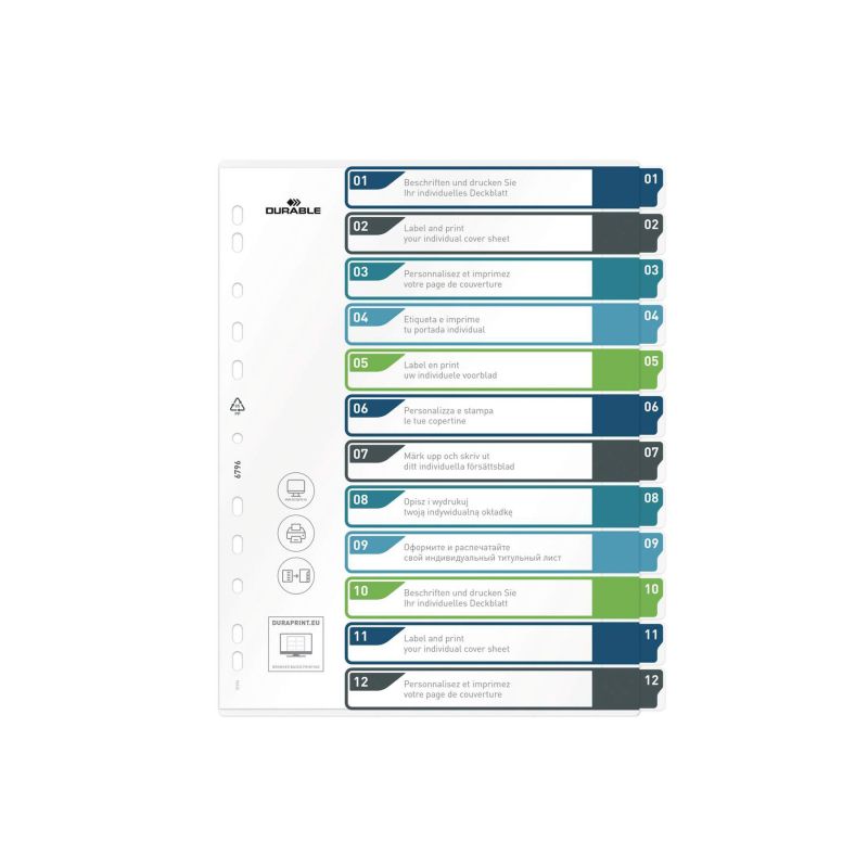 Durable Разделители за принтиране, PP, 12 цвята
