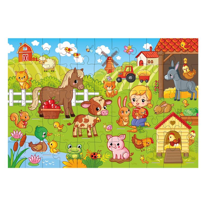 Детски 3D пъзел "Ферма" с 55 части и удобна за пренос кутия.