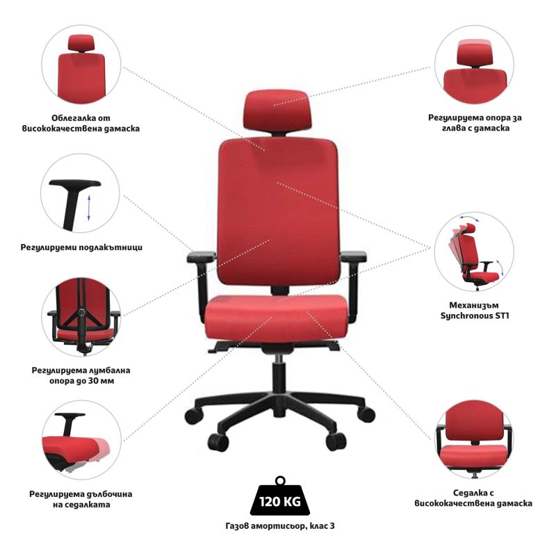 Ергономичен стол Rim Flexi FX1114, ST1 механизъм, до 120 kg, червен