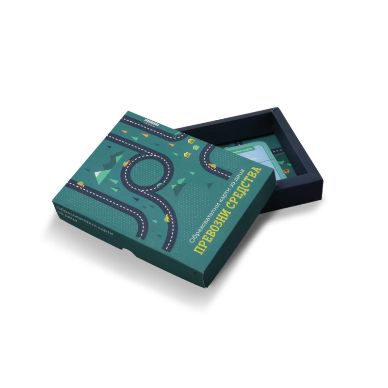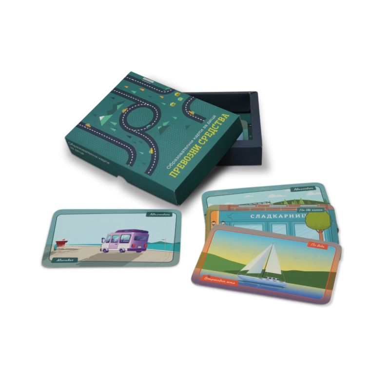Комплектът „Превозни средства“ съдържа 52 броя образователни карти.