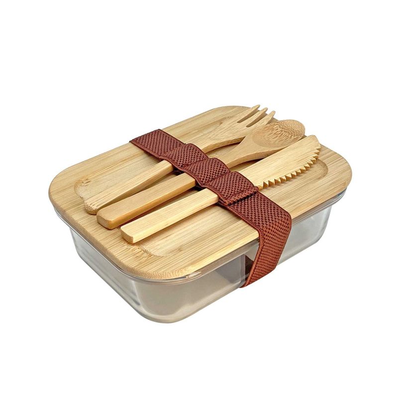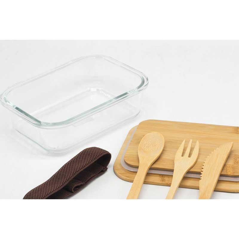 Office 1 Кутия за храна Nature, стъклена, с включени прибори, 17.2 х 12.5 х 6 cm, 700 ml