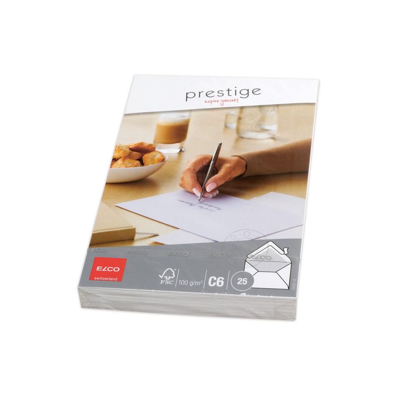 Elco Пощенски плик с воден знак, C6, 114 х 162 mm, 100 g, триъгълен капак със самозалепваща лента, бял, 25 броя