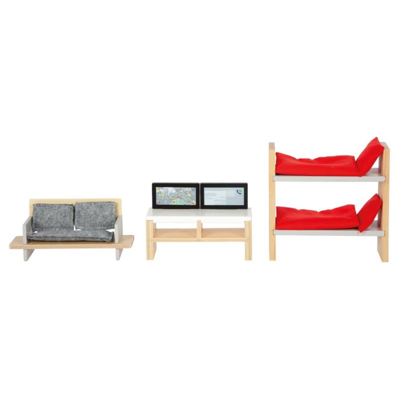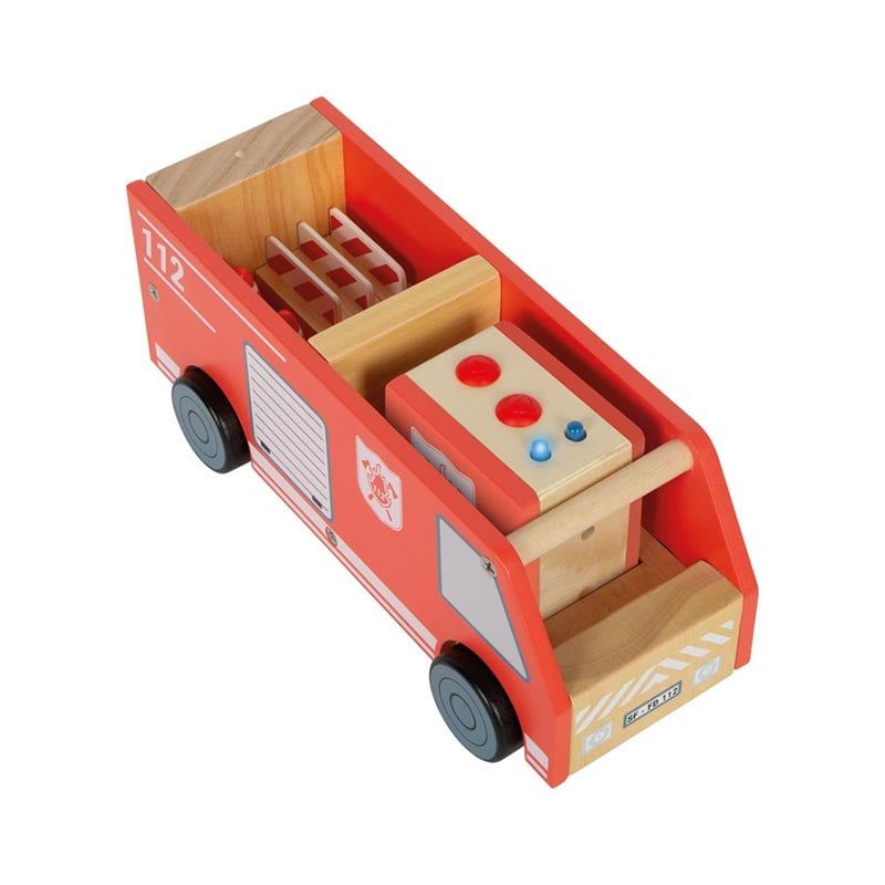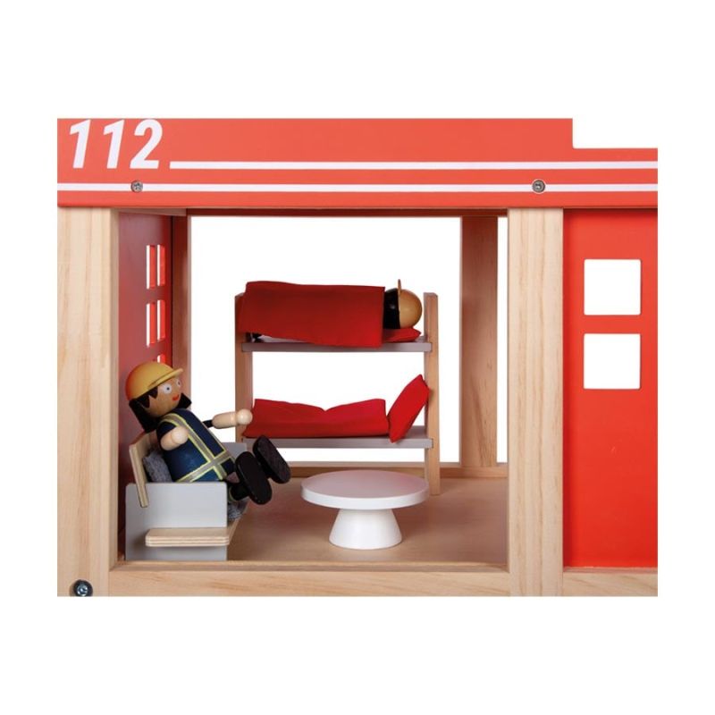 - Голяма дървена пожарна станция с камбана и XXL комплект аксесоари.