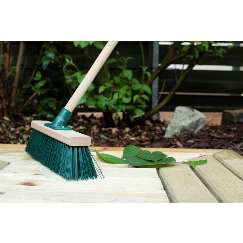 Метла York, индустриална, дървена, с конусовидна резба, 30 cm, зелена