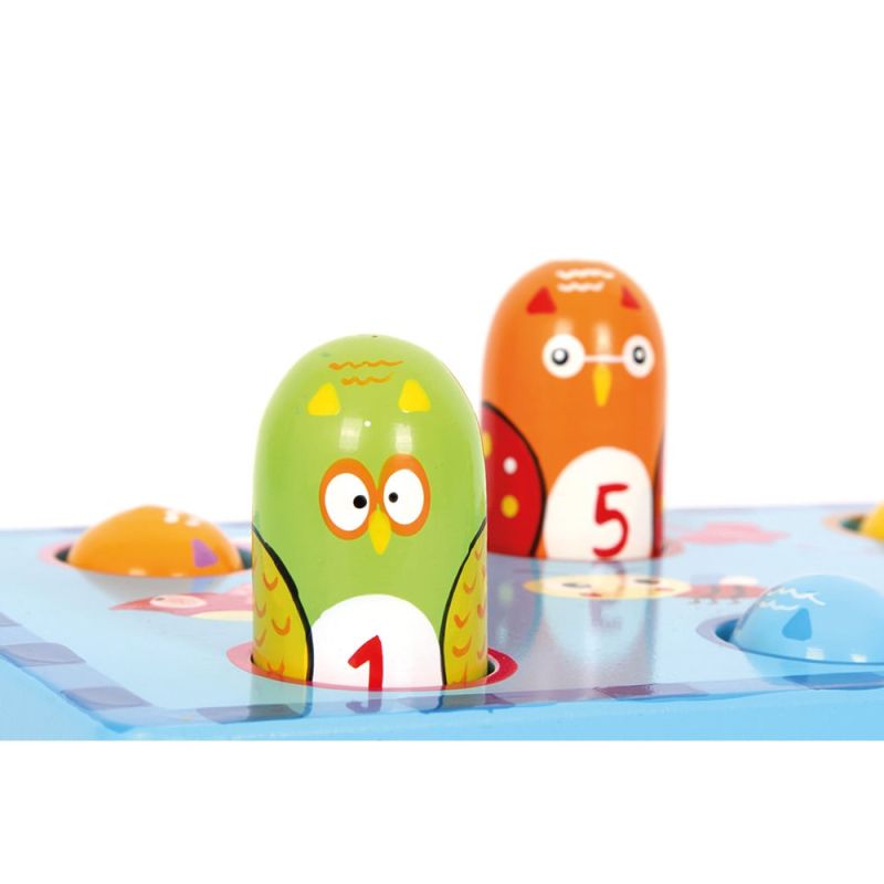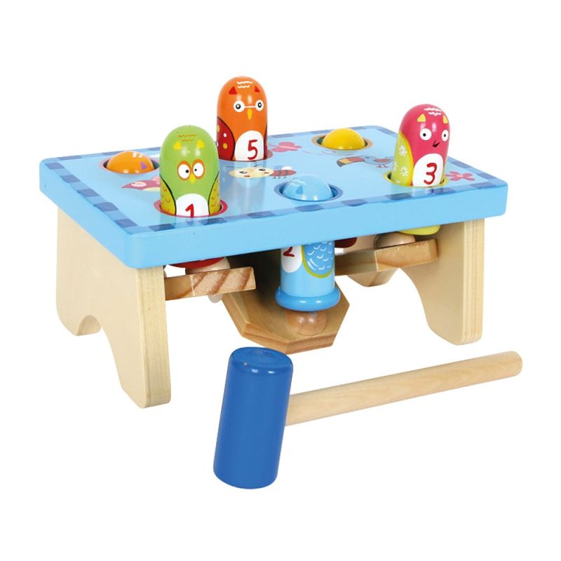 Шестте нахални малки птици подават цветните си глави и чакат малките деца да ги ударят с чук. Когато една птица сведе глава, друга я повдига. Тази уникална игра е изработена от здрава масивна и лакирана дървесина и ви кара да играете отново и отново.