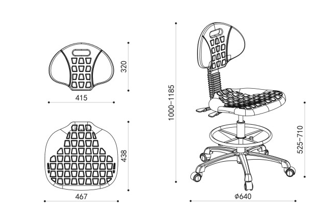 Лабораторен работен стол RFG Nero Ring, висок, полиуретан, до 130 kg, черен
