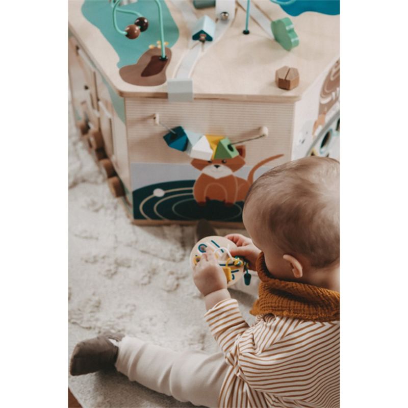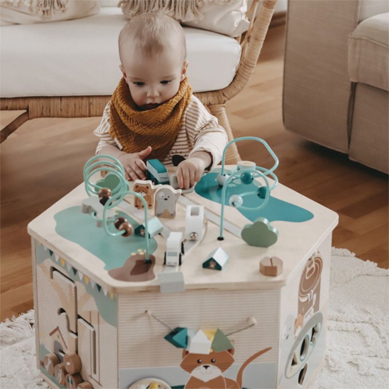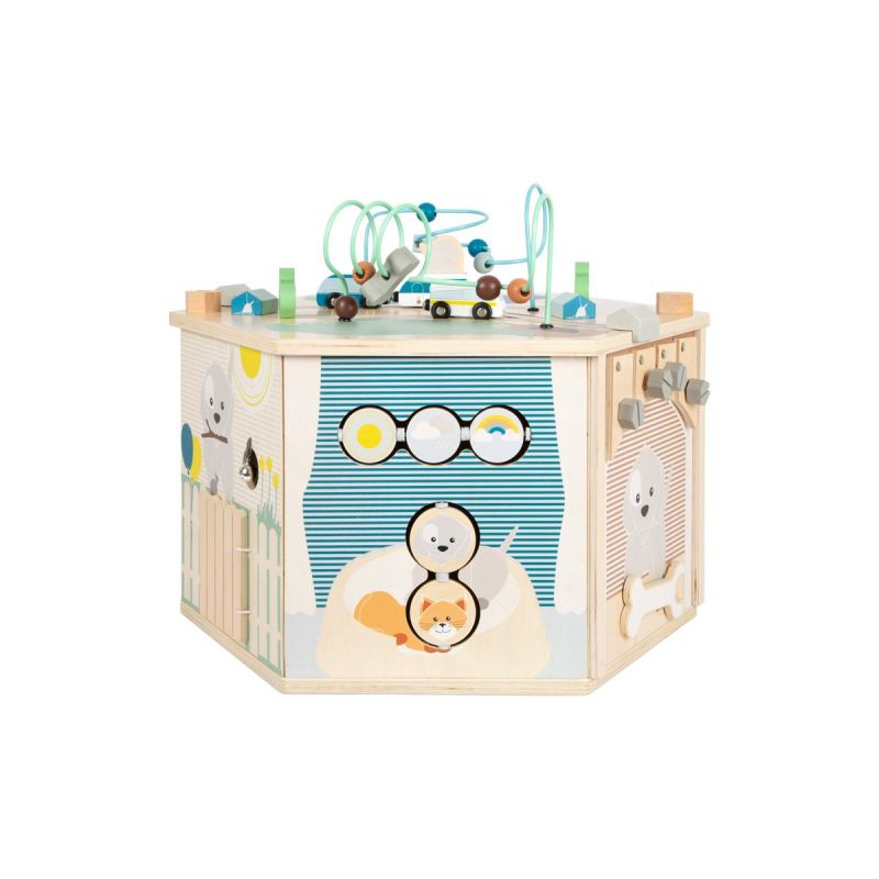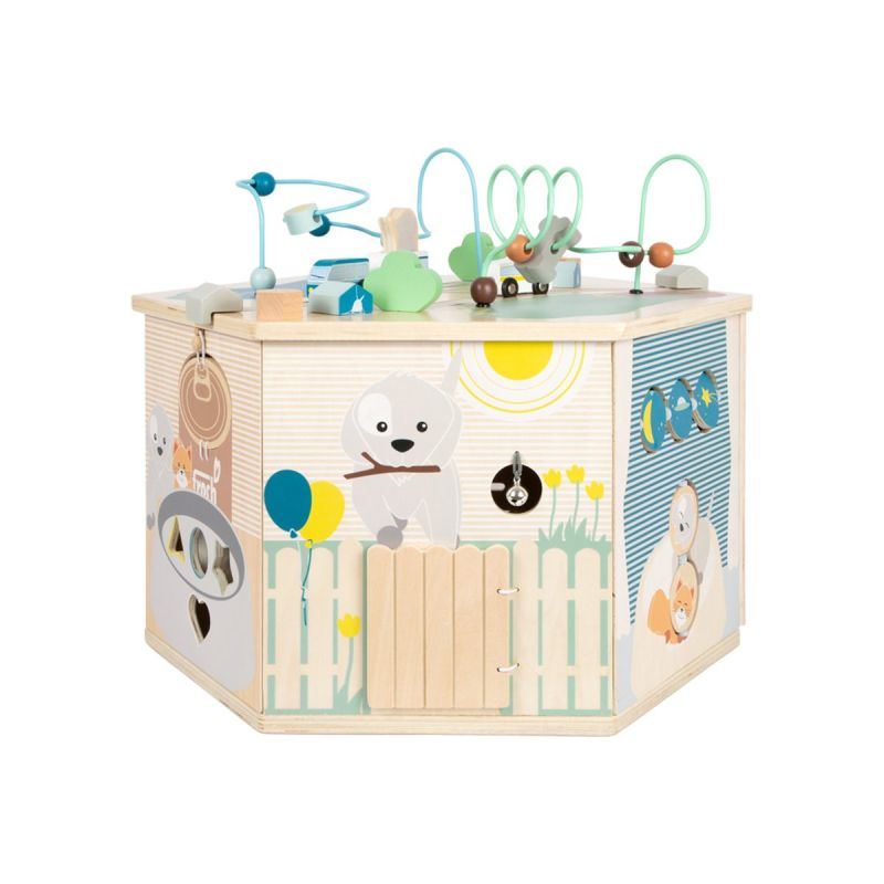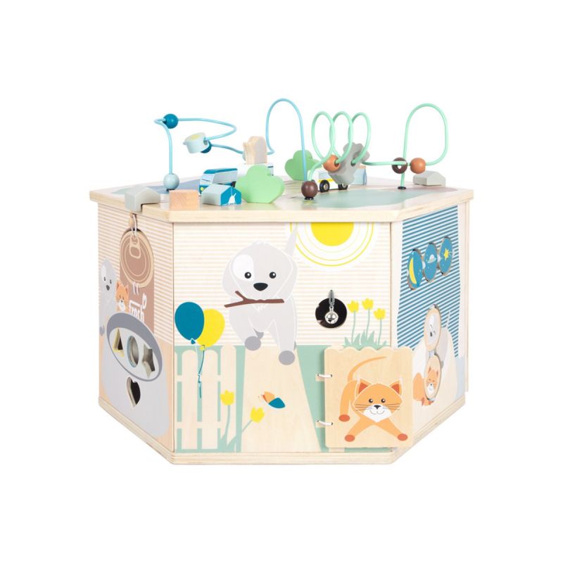 Този куб за активности от 8 страни предлага дълготрайно забавление и дава знания за това какъв е животът с домашни любимци! Децата ще тренират двигателните си умения в плъзгащия се лабиринт, играта за приспособяване на формата, с въртящите се плочки или с предизвикателството да сортиране на цветове - всички визуално свързани с любимите животни!