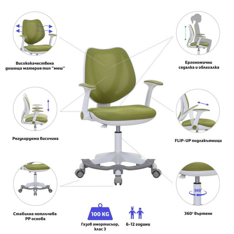 Детски стол RFG Sweety White, меш, до 100 kg, зелен