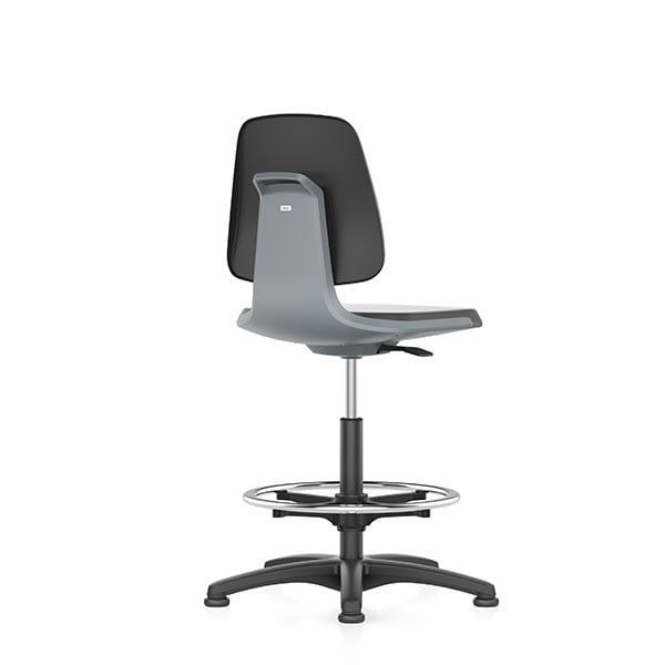 Лабораторен работен стол Bimos Labsit 9125, висок, до 120 kg, черен и сив