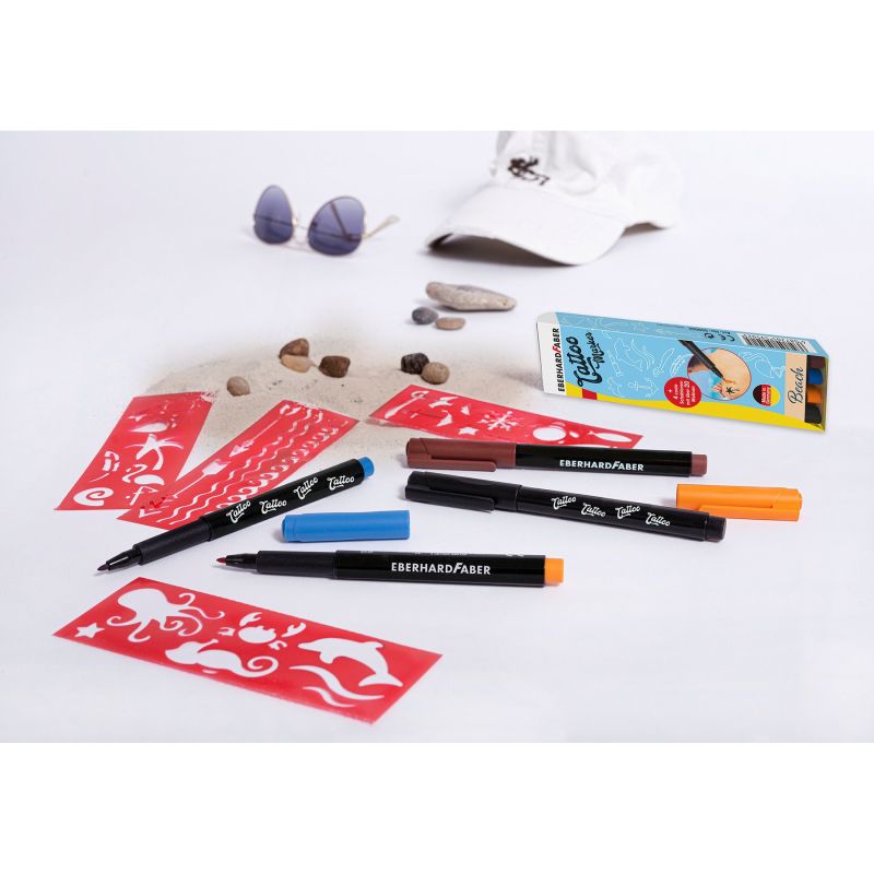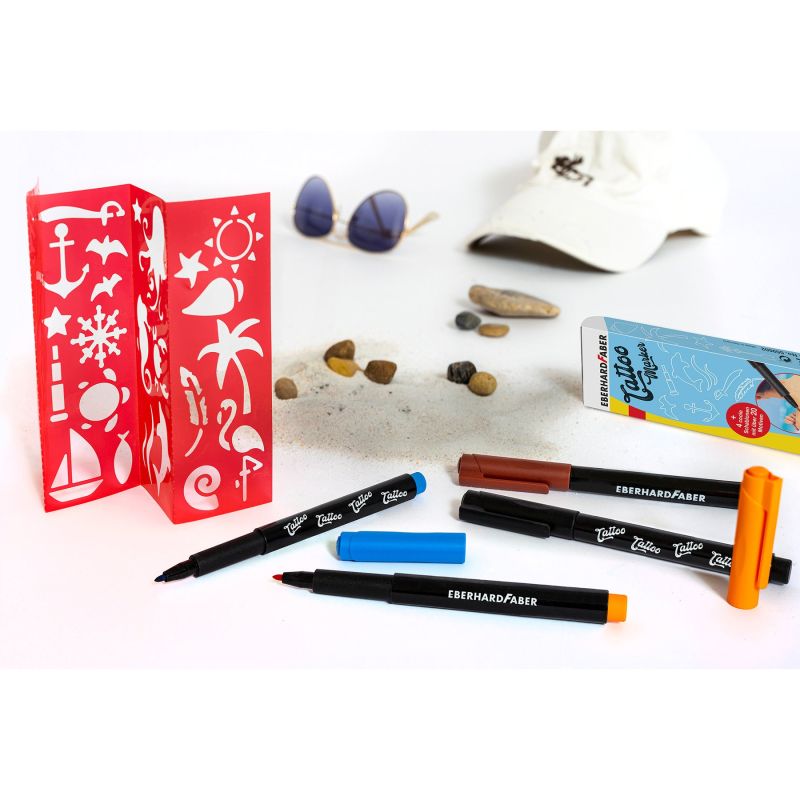 Eberhard Faber Маркери за татуировки, с включени шаблони, 4 цвята