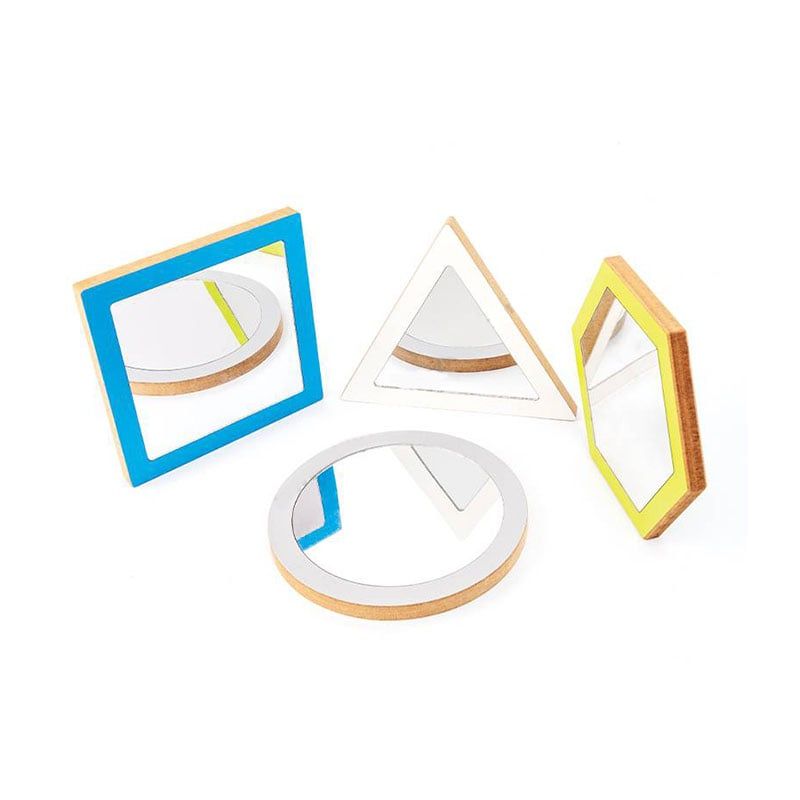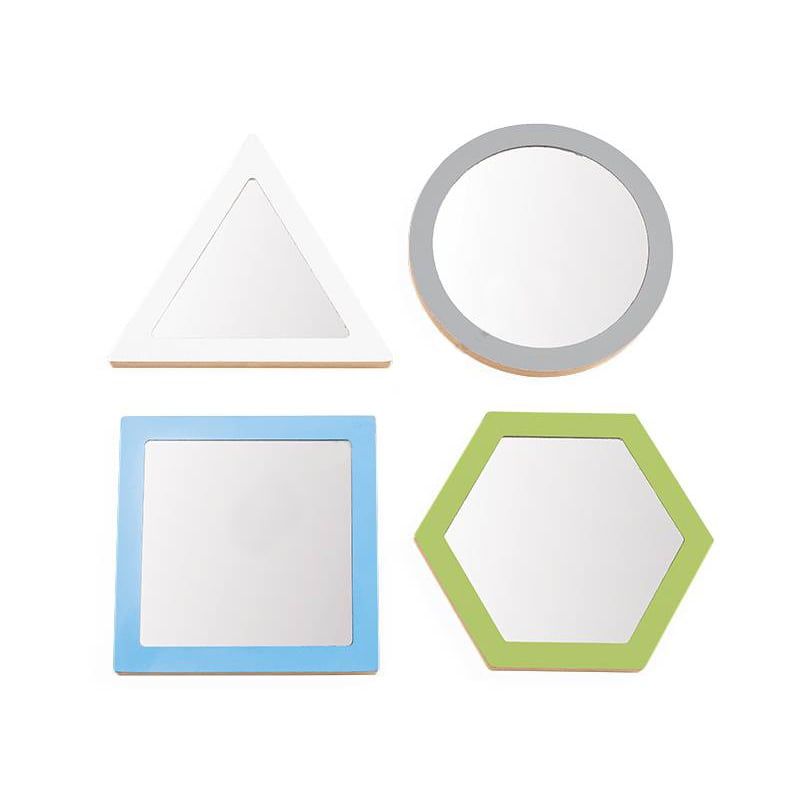 Комплектът съдържа 4 броя огледала: кръгло, триъгълно, шестоъгълно и квадратно. Всяко от тях е оцветено в различен цвят.