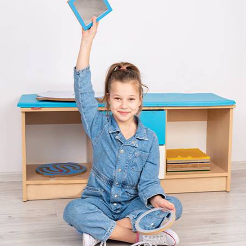 Огледалата са проектирани в четири различни форми. Те са идеални за логопедични упражнения, игри, развиващи самосъзнанието и чувството за наблюдение у детето.