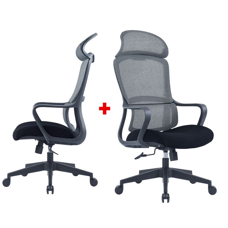 Директорски стол RFG Best HB, дамаска и меш, Tilt механизъм, до 120 kg, черна седалка, сива облегалка, промоция Вземи 2, плати 1