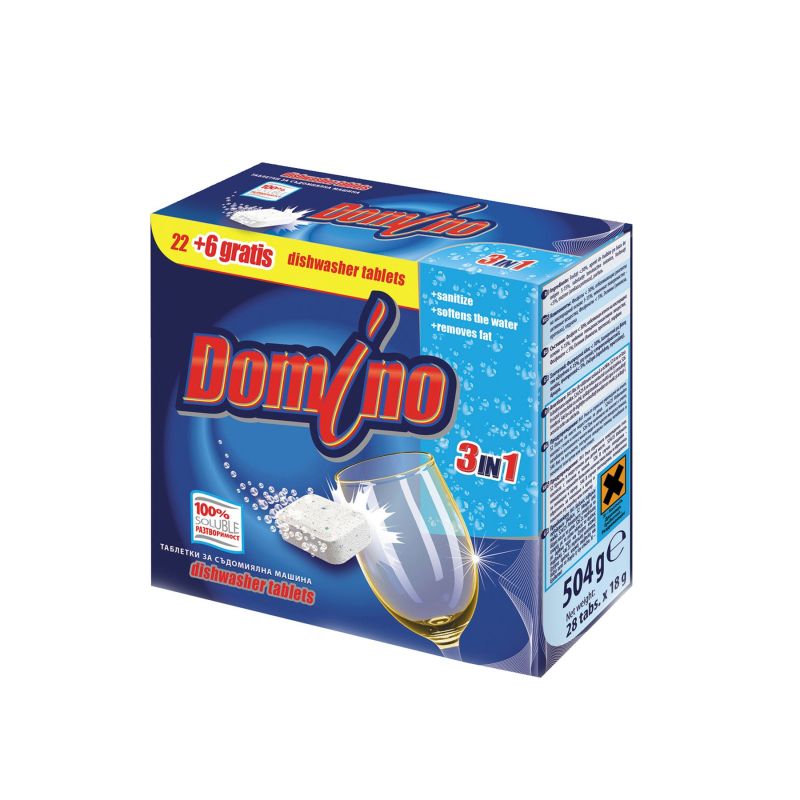 Таблетки за съдомиялна машина Domino, 3 в 1, 22+6 броя, 28 таблетки l