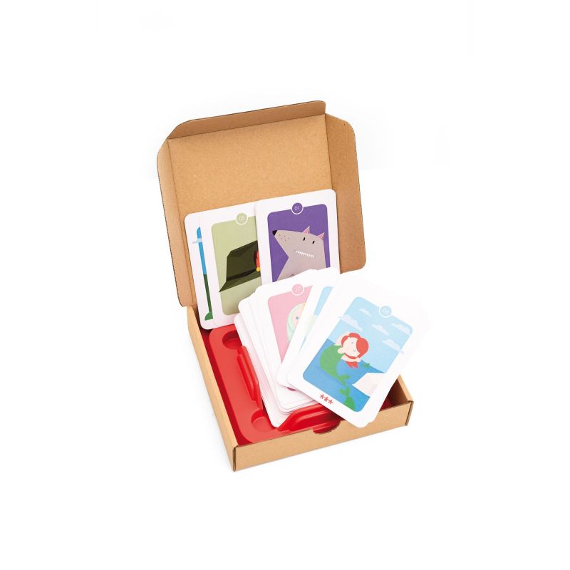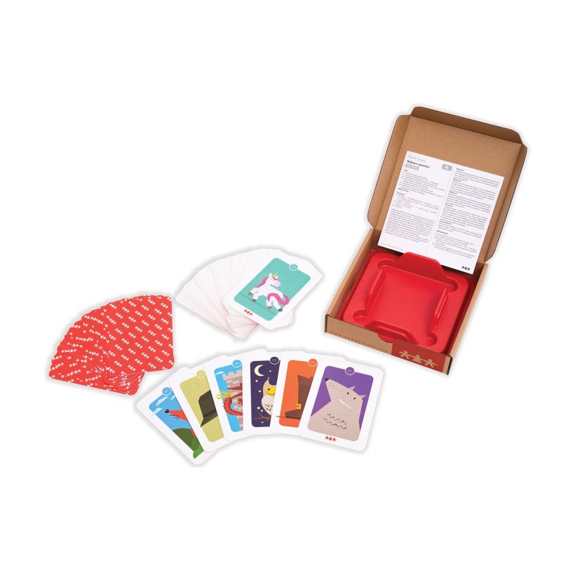 Комплектът съдържа 64 карти с характерните символи от различни приказки и истории.