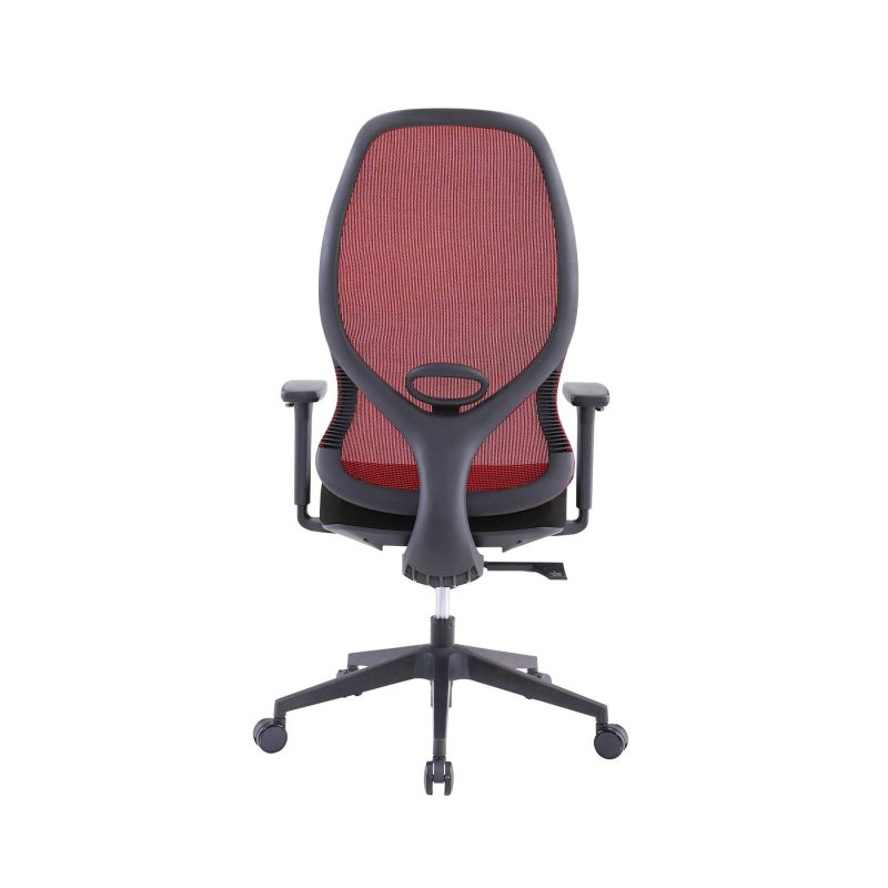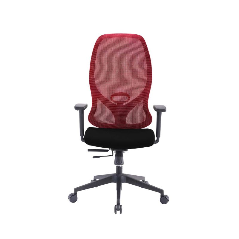 Ергономичен стол RFG STAR HB, дамаска и меш, Synchronous механизъм, до 150 kg, черна седалка, червена облегалка