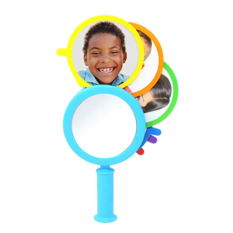 Огледалата са в ярки цветове и имат здрава, лесна за хващане дръжка.