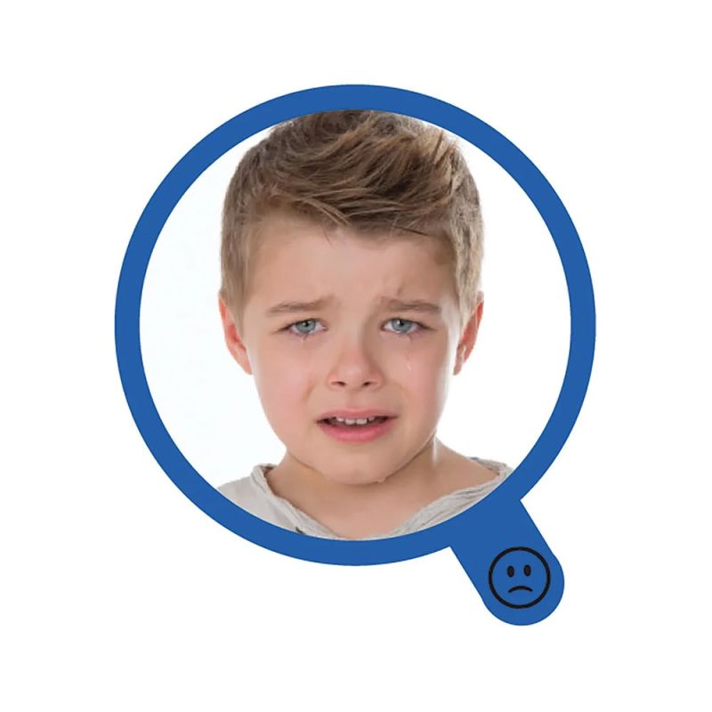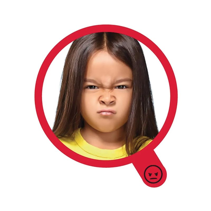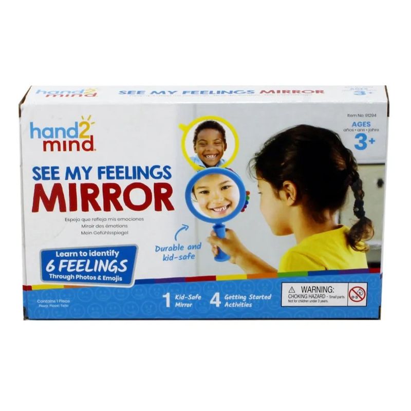 Помогнете на децата да видят и да се научат да разпознават емоциите в себе си и в другите с помощта на огледалото и 6-те плъзгащи се снимки на истински деца, които изразяват истински емоции: щастие, изненада, страх, тъга, глупост и гняв.