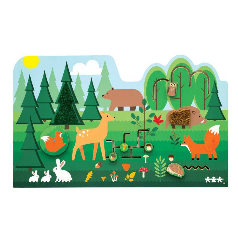 Манипулативната дъска с горски мотиви насърчава фините двигателни умения при децата.