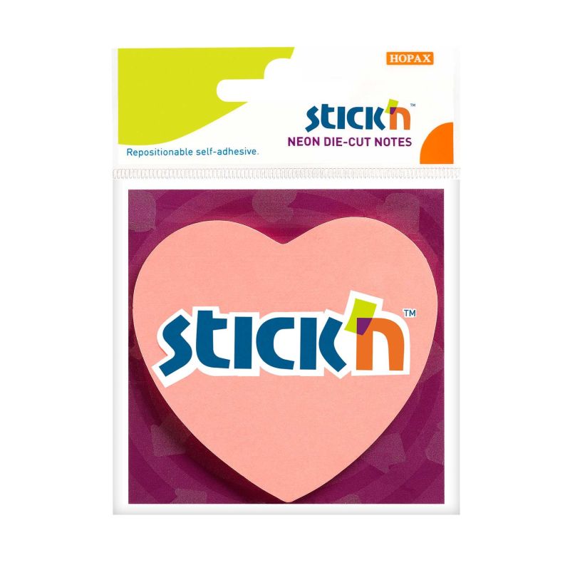 Stick'n Самозалепващи се листчета Сърце, неонови, розови, 50 листа
