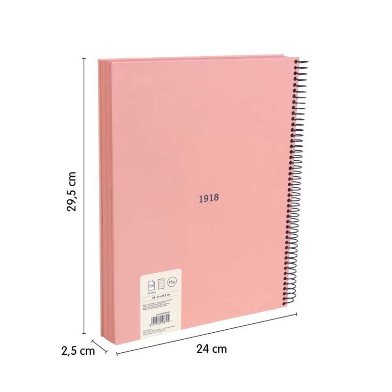 Milan Тетрадка 1918, А4, широки редове, твърда корица, със спирала, 120 листа, розова