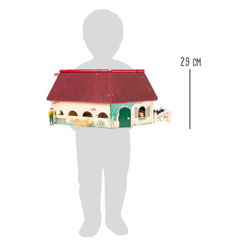 Уникалната стабилна дървена конструкция на фермата е проектирана в забележителна форма и оборудвана с отваряем покрив, което позволява да се играе лесно и удобно.